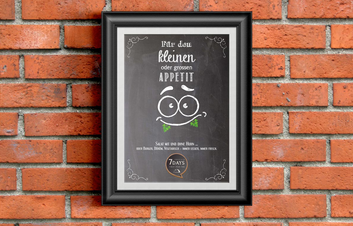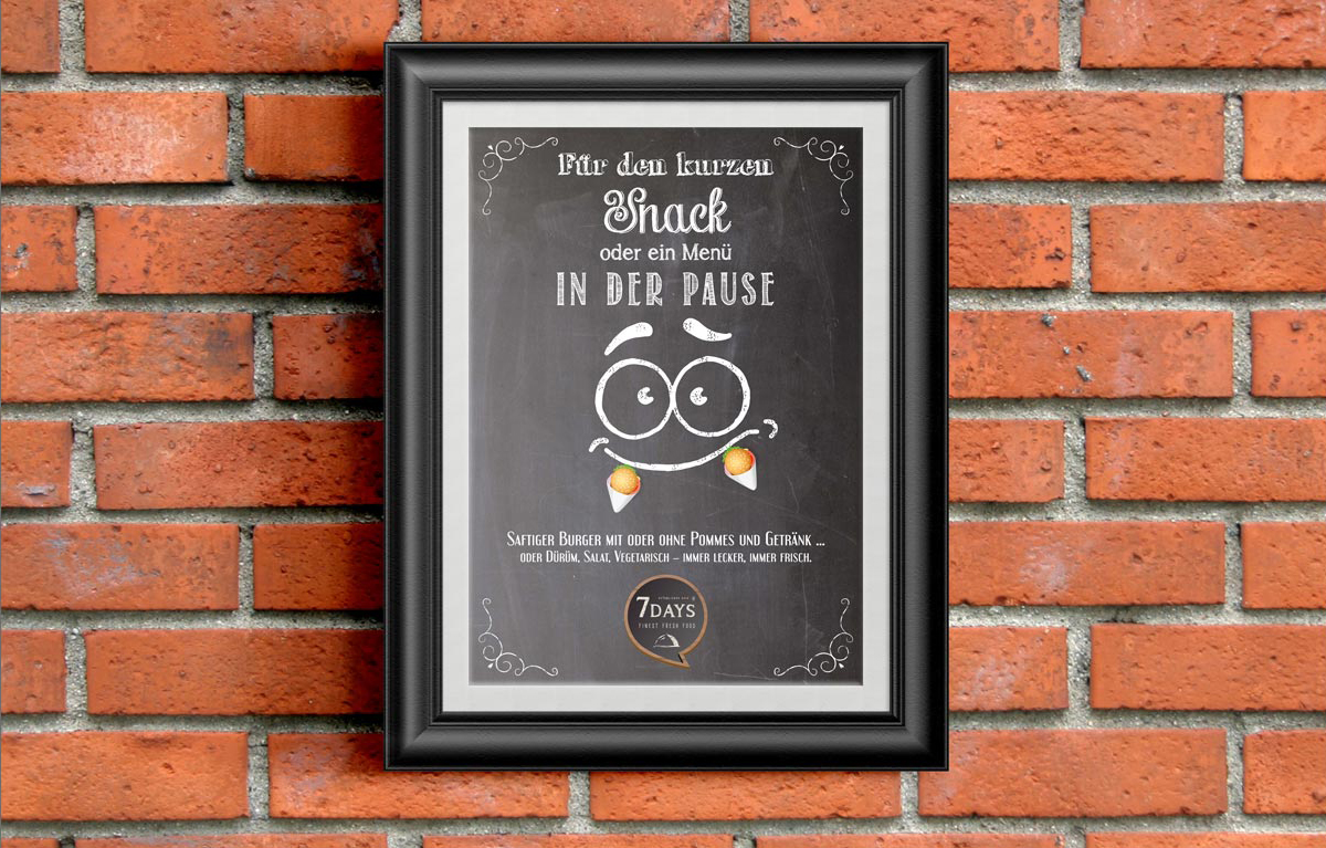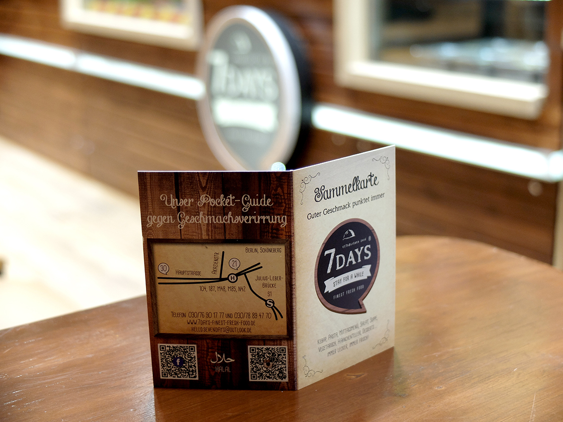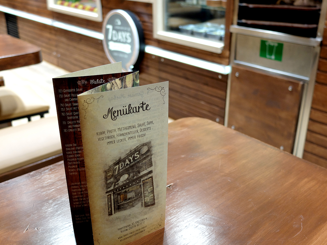 Ein Gestaltungskonzept für 7Days: ein Bistro das 7 Tage die Woche für dich offen hat – immer lecker, immer frisch. Eine verspielte Kombination zwischen modernen und alten bekannten Motiven – angefangen beim Logo, über den Druckerzeugnissen bis hin zu dem Webauftritt.