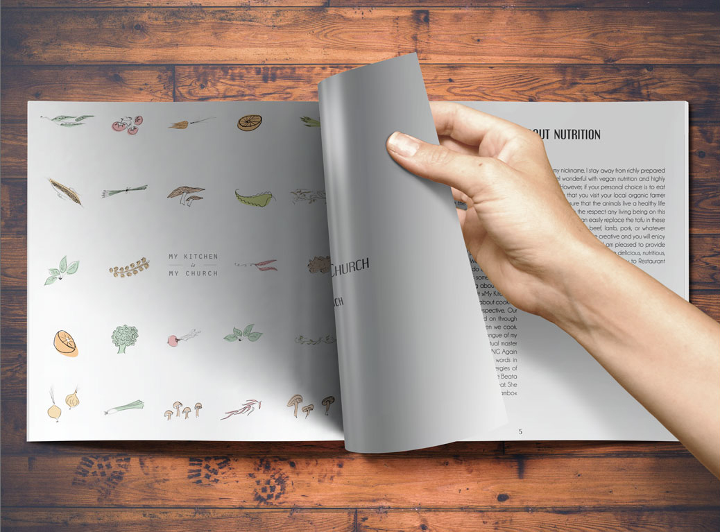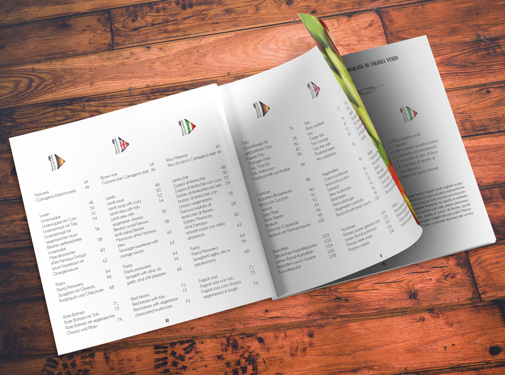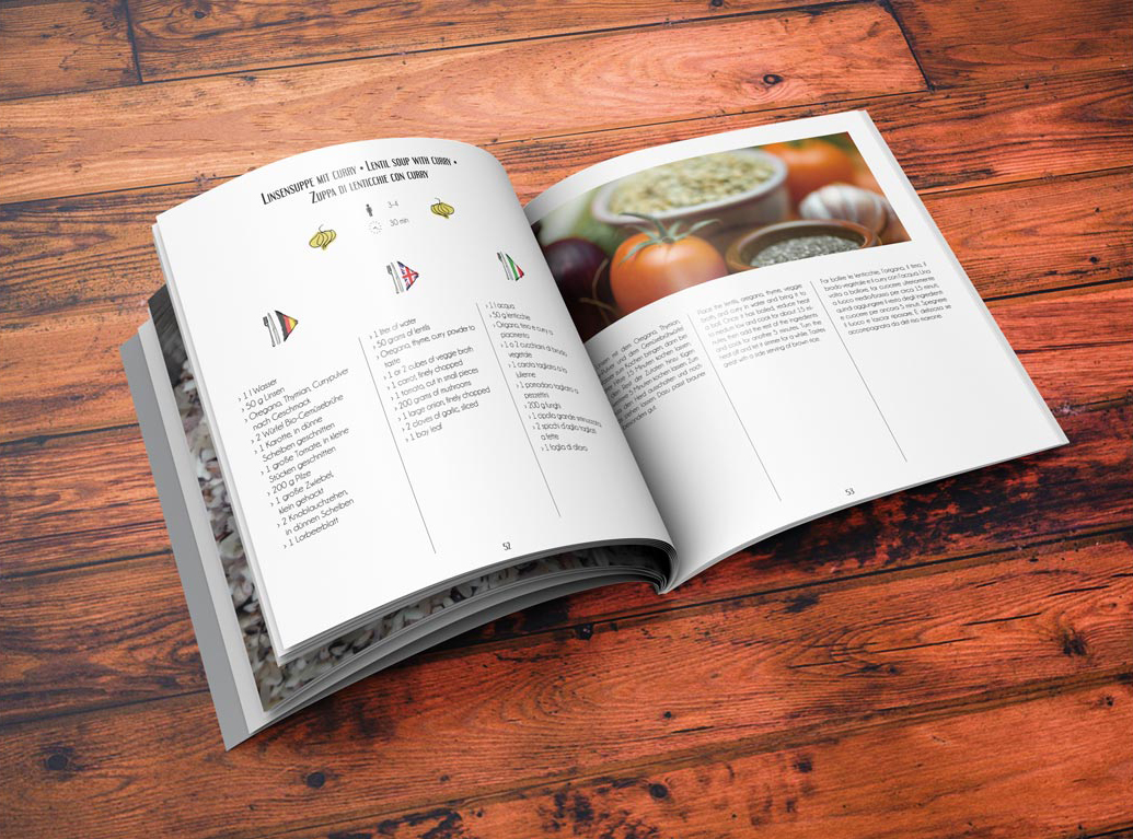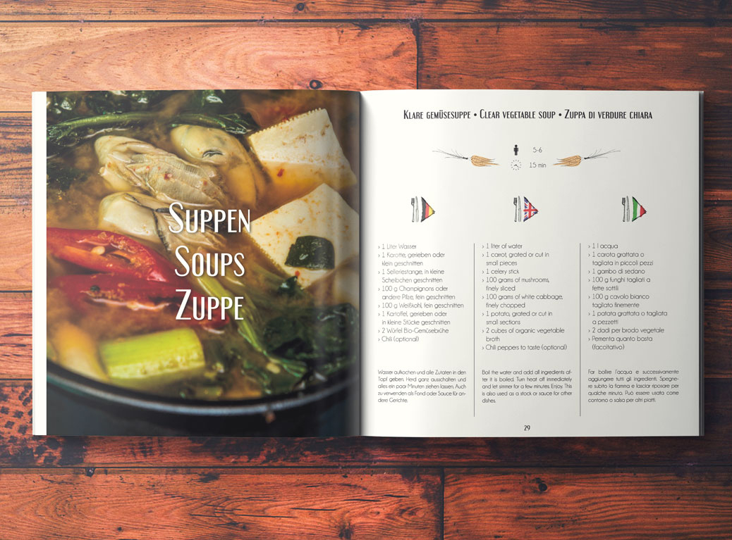 Ein Kochbuch mit veganen Rezepten, ein schlichtes Layout mit dem Blick für das Wesentliche. Die Zeichnungen des Autors werden dezent in Szene gesetzt, ebenso die Bilder zu den einzelnen Rezepten.