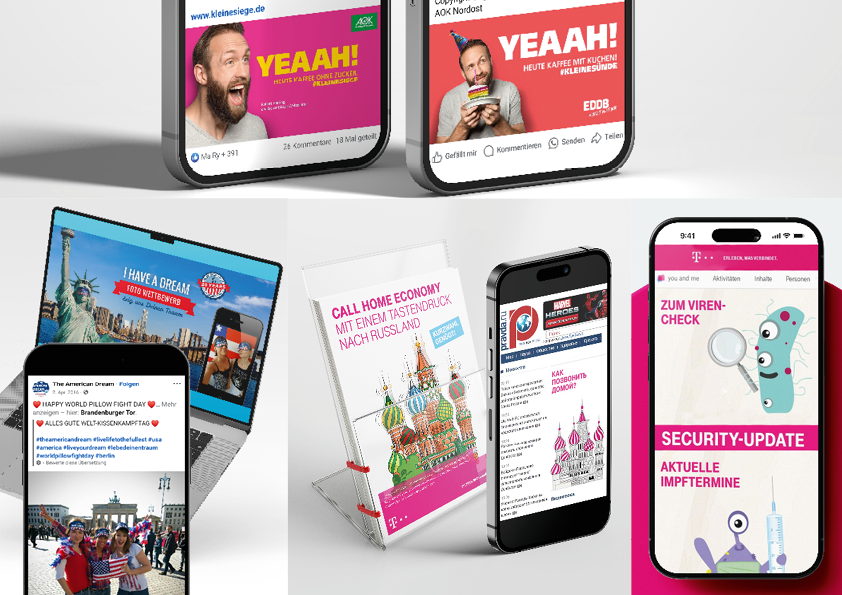 Einen aufmerksamstarken Auftritt erreicht man oft mit wenigen Mitteln. Ob nun eine „gekaperte“ Kampagne für einen Geburtstagsgruß. Eine simple Schlafmaske die medial ausgerollt wird, klingelnde Zwiebeltürmchen in Moskau die für einen Telefon-Tarif werben oder kleine Keime die zum Viren-Check einladen.