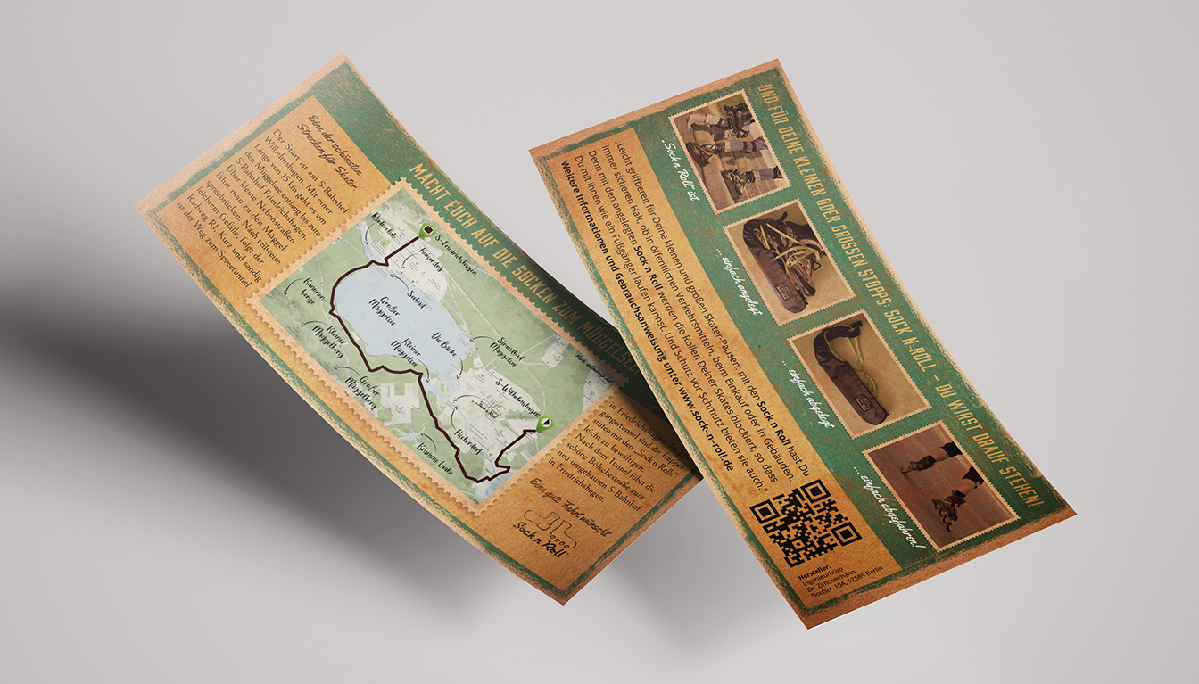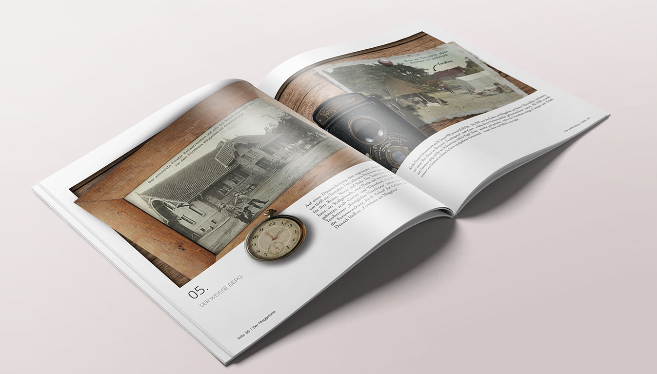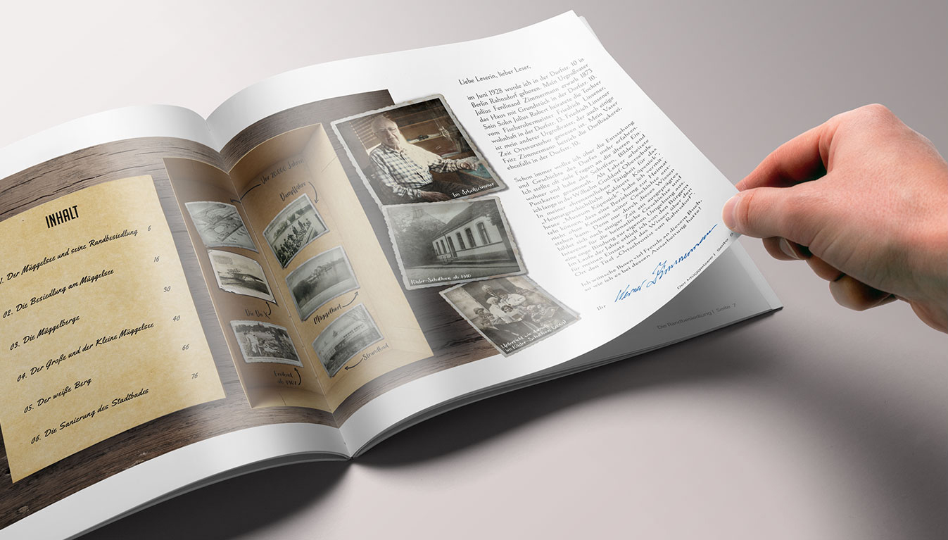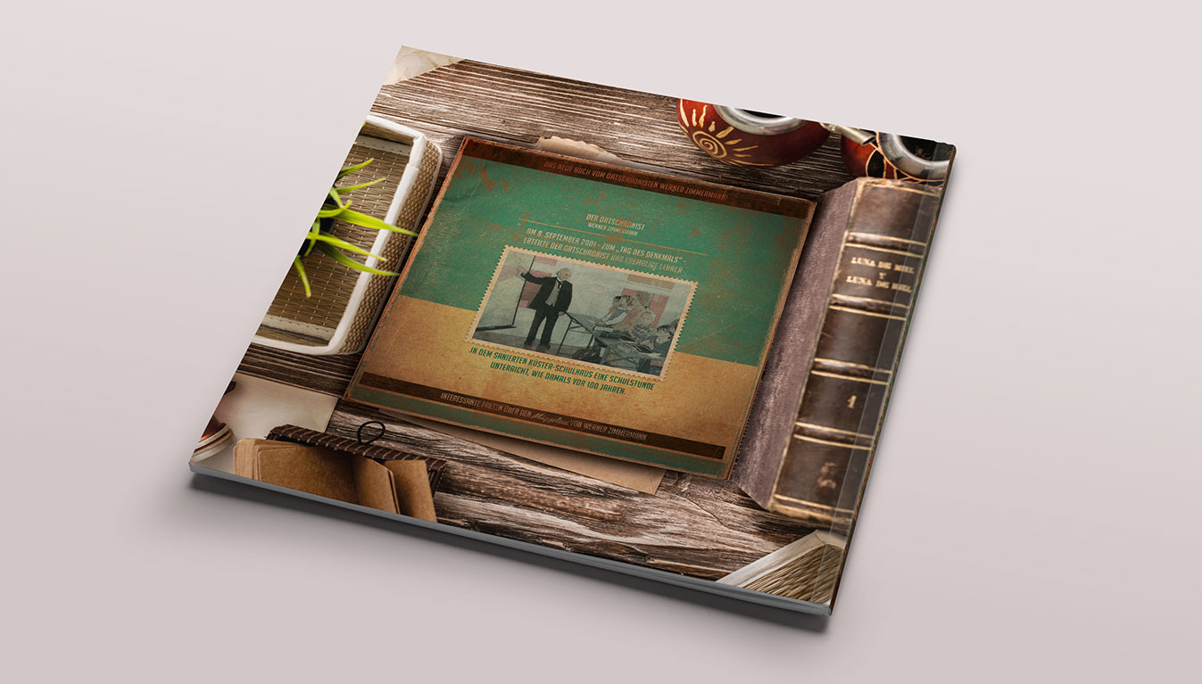 Gestaltung eines Buches über den Müggelsee, mit Dispenser und Plakat. Das Layout erhält einen nostalgischen Look.